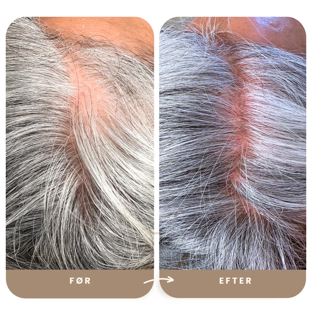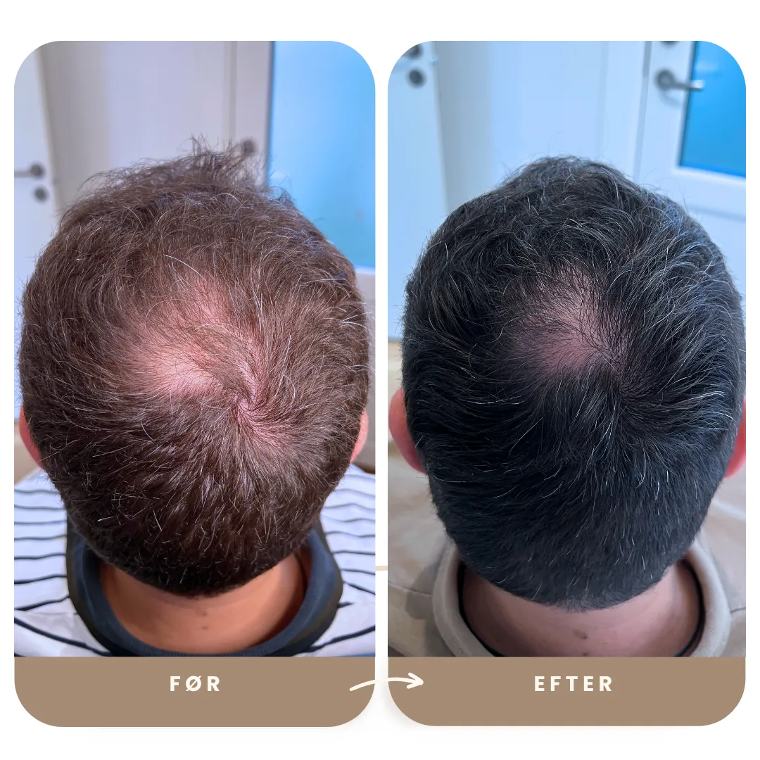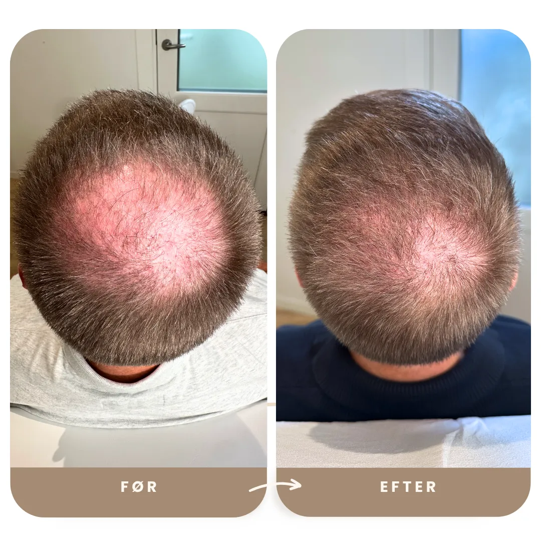 Efter 3 behandlinger ses ofte tydelig forbedring af hårkvalitet og vækst, og resultatet kan vedligeholdes med en årlig opfølgning.
