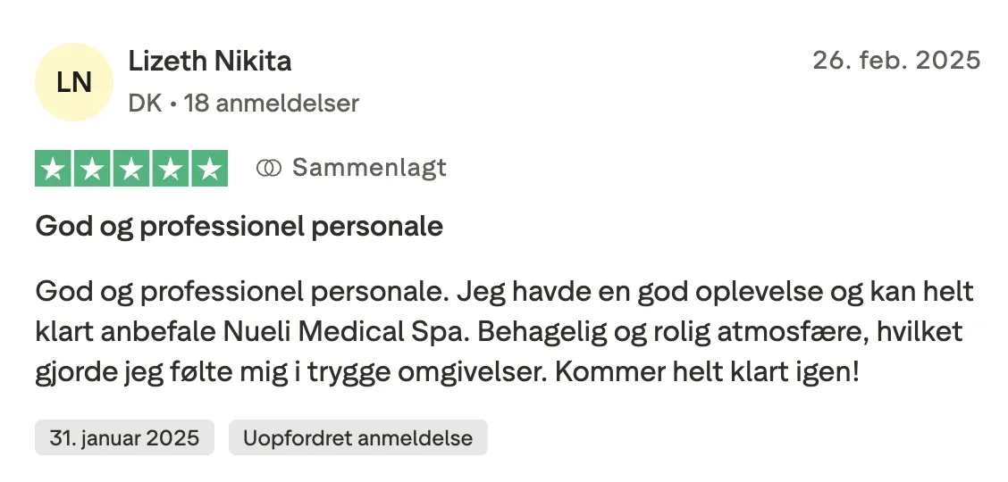 Hos Nueli er din skønhed og dit velvære vores passion. Vores team af erfarne specialister brænder for at skabe naturlige og smukke resultater gennem skræddersyede behandlinger.